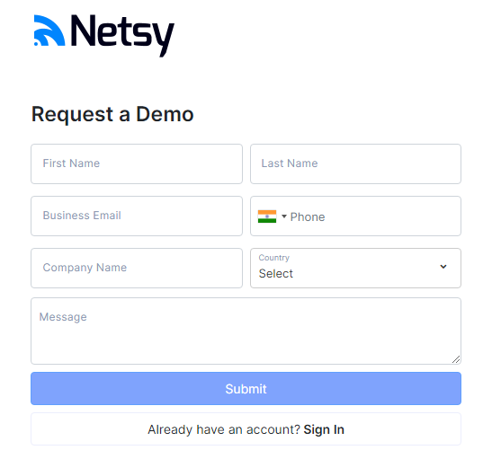 A request has to be made in order to set up a demo call and obtain credentials. To request the demo, please follow the steps below: Request a Demo To request for a new Netsy account, navigate to Netsy ( www.netsy.app )and click on the “Request a ...